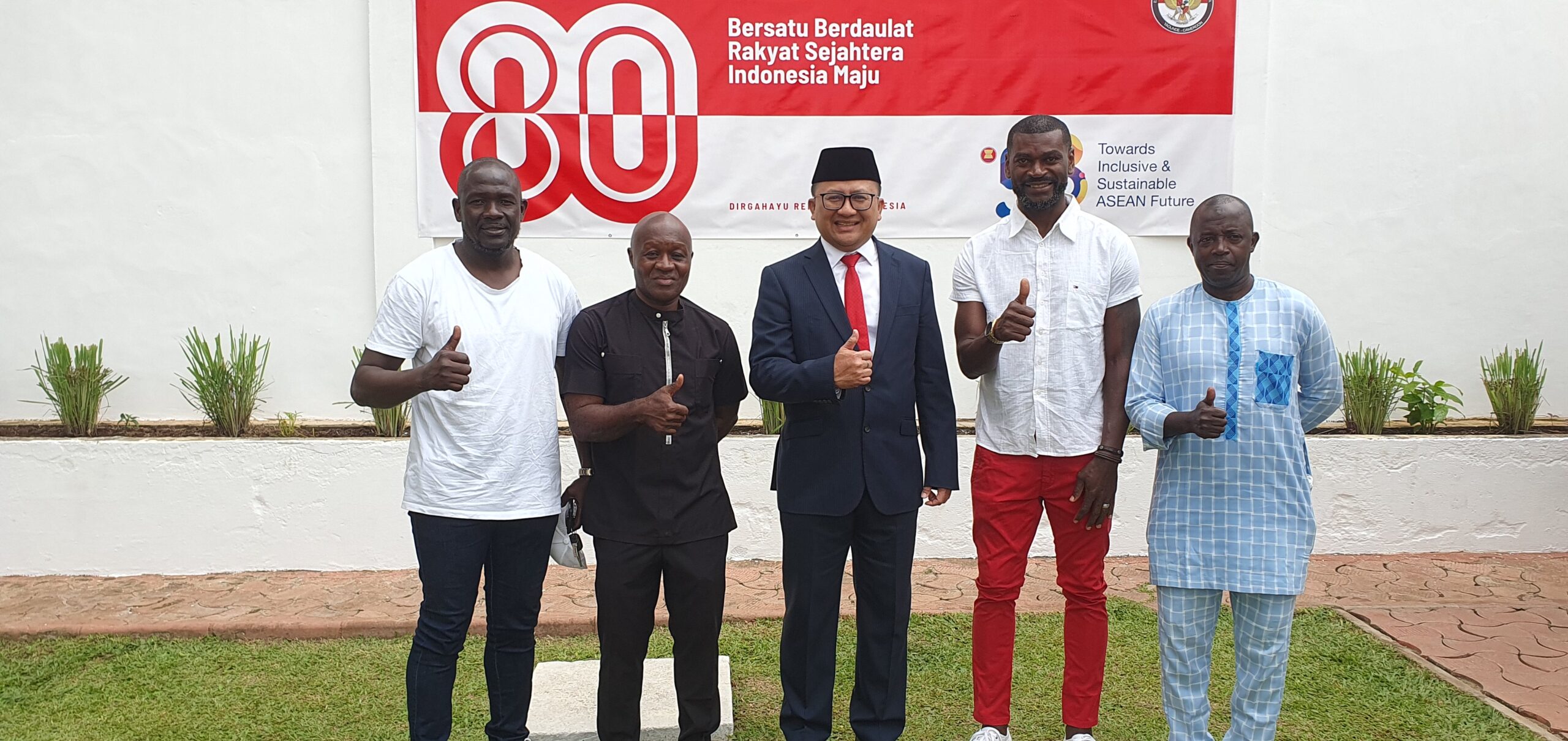 Yaoundé, le 17 août 2025 – L’esprit de la 80e Fête de l’Indépendance de l’Indonésie a résonné jusqu’au cœur de l’Afrique centrale. Dans la cour de l’Ambassade d’Indonésie à Yaoundé, le drapeau rouge et blanc flotte fièrement, suivi par l’ambiance festive prenait vie au rythme de chansons populaires indonésiennes comme Stecu et Tabola Bale. Des jeux traditionnels du 17 août, tels que la course de billes (sendok kelereng), le concours de « manger des crackers » (makan kerupuk), et la danse de ballon (joget balon), ont plongé les participants dans une atmosphère conviviale et pleine de joie.