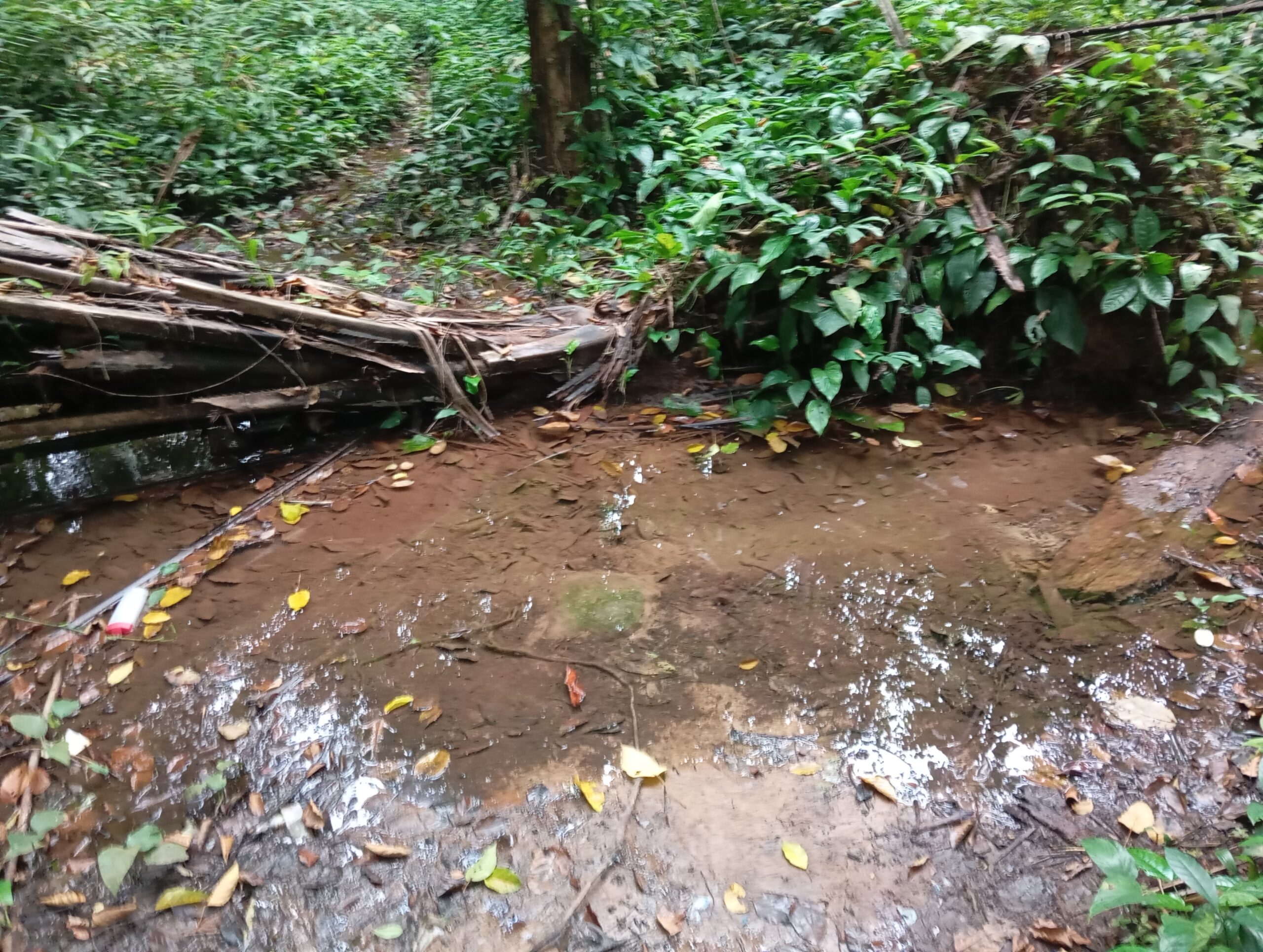 “Ils nous ont donné des maisons, mais pas de forêt, pourtant notre maison c’est la forêt,” lâche amèrement Bibouri Albert (voir 1er plan, image de titre), jeune issu de la communauté Bagyeli de Lolabé. Sa principale source de revenus est un job à temps partiel dans le parc de Campo-Ma’an, où il travaille dans le cadre de la formation des moniteurs, au processus d’habituation des gorilles . Malgré cette source de revenus, sa vie au village n’est pas commode, il nous a conduit au seul point d’eau destiné à la consommation, le forage construit et mis à leur disposition étant non fonctionnel, faute d’entretien depuis bientôt 2ans.