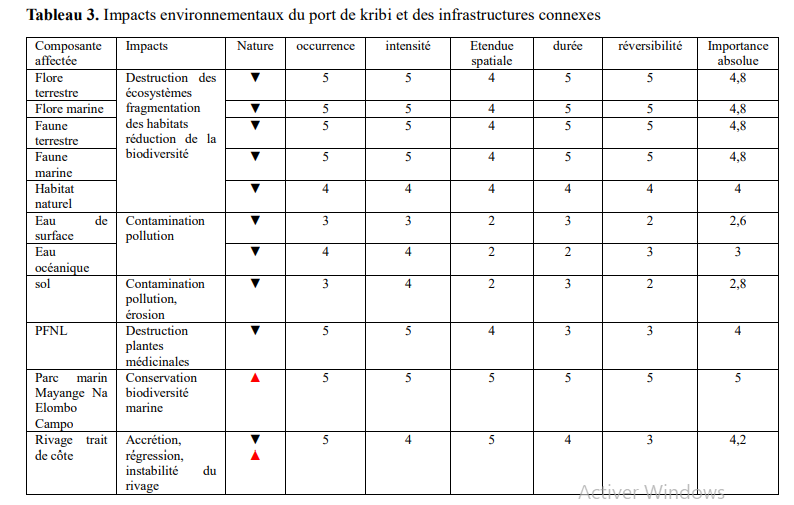 Les rapports d’impact environnemental ont été rédigés sans réelle participation des populations locales. La construction du Complexe Industrialo-Portuaire de Kribi (CIPK) suivi de celle de l’autoroute Kribi – Lolabé a pour objectif de promouvoir le développement économique du Cameroun et de la sous-région dont il constitue la locomotive. Ces infrastructures, en créant les emplois, contribuent à la lutte contre la pauvreté tout comme à l’accroissement des échanges extérieurs (Amougou & Bobo, 2018). Une telle dynamique a entrainé non seulement d’importants mouvements migratoires, mais aussi, la destruction des écosystèmes tout en déstabilisant les équilibres naturels et générant des risques divers. En dehors des impacts environnementaux, les impacts sociaux de premier plan découlant généralement de ce type de projets sont : les déplacements des populations, la destruction de leur milieu de vie et des atteintes à la qualité de vie.
