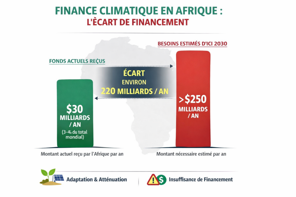 Autrement dit, les besoins sont immenses, les vulnérabilités sont fortes, mais les ressources mobilisées restent encore largement insuffisantes. Cet écart entre les besoins réels et les financements effectivement accessibles constitue l’un des plus grands freins à la transition écologique du continent.
